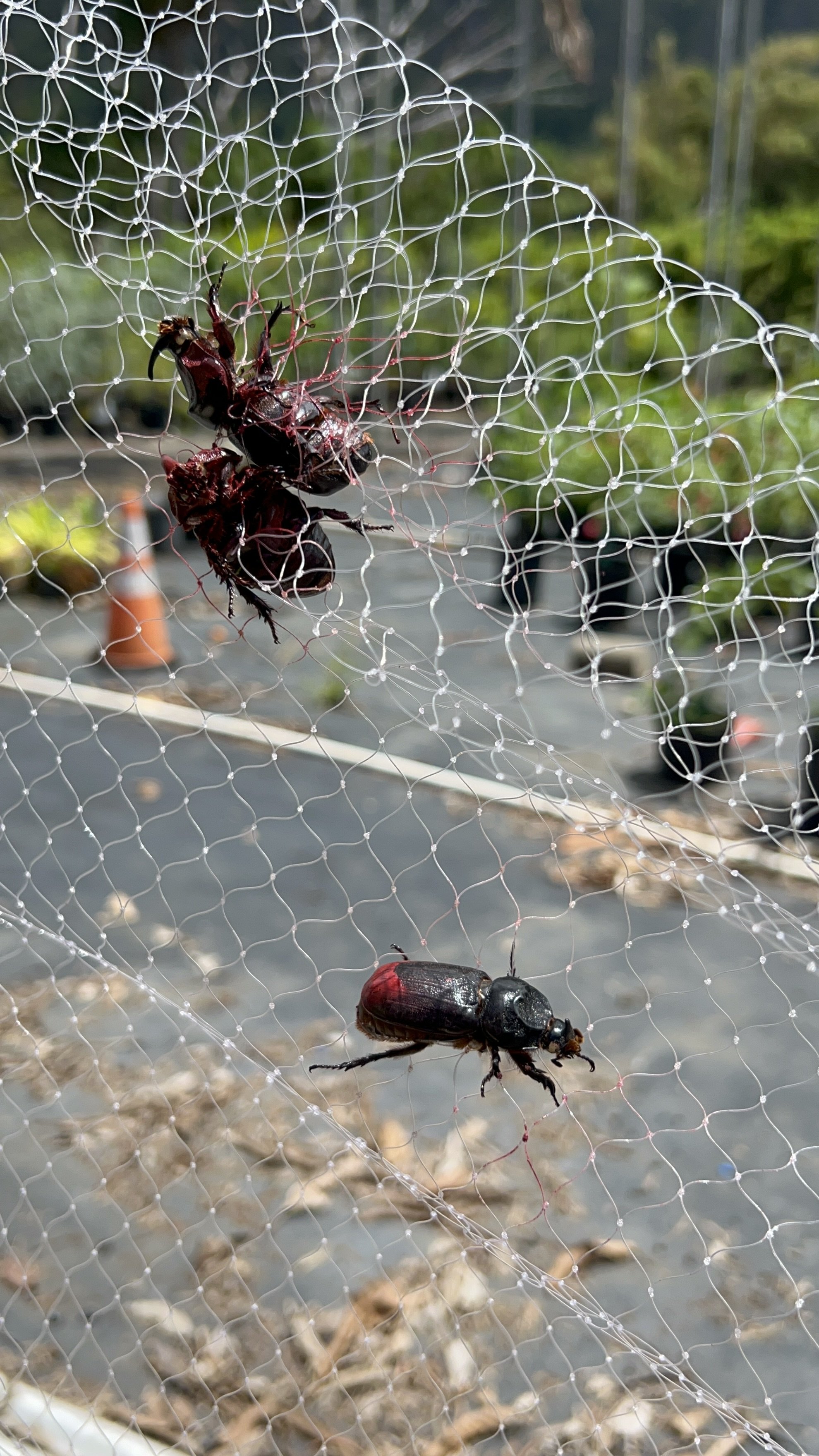 CRB beetles captured in Waimānalo, Oʻahu, using a netting technique