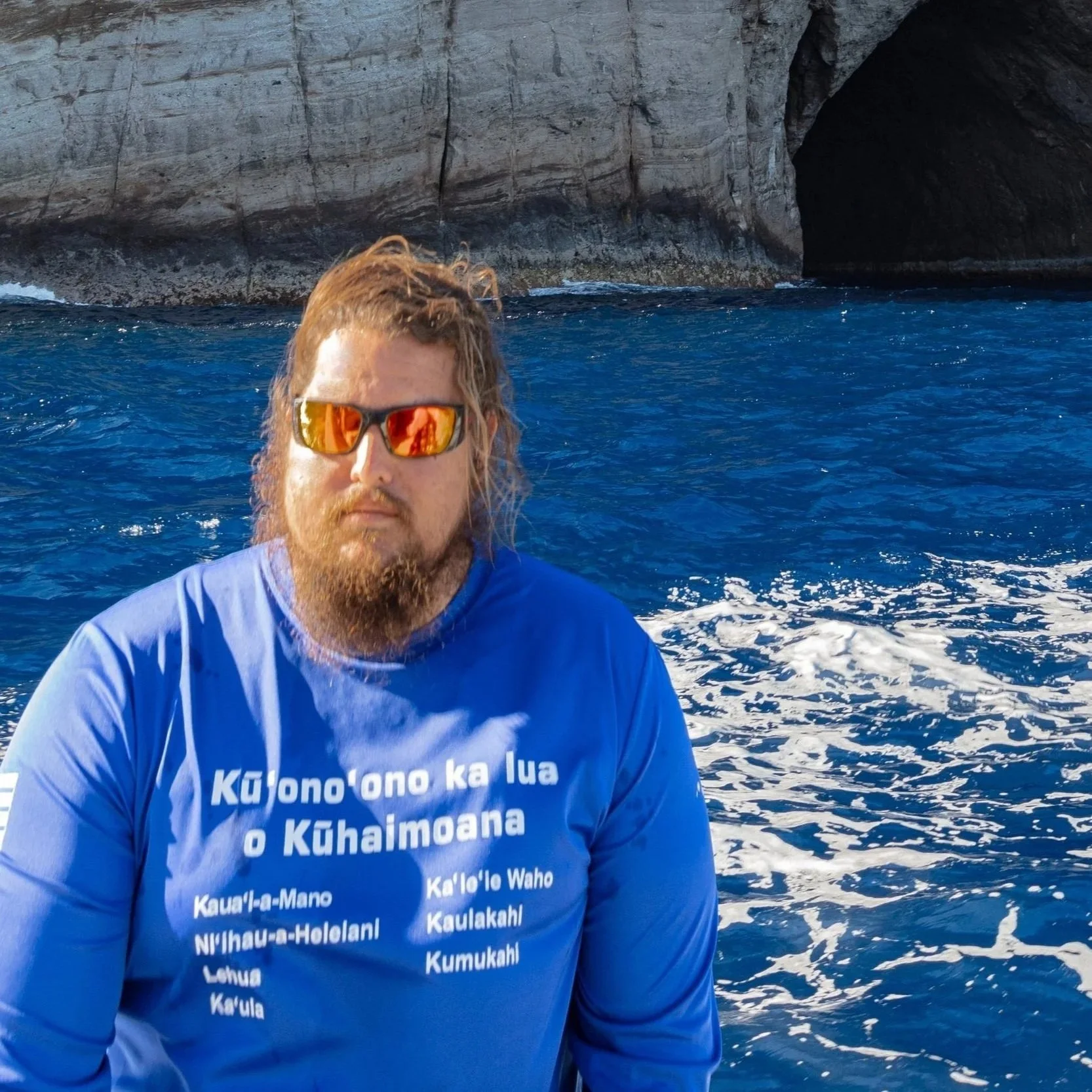Born and raised on Hawaiʻi Island, Kaikea completed his master’s at University of Hawaiʻi at Hilo after graduating Magna Cum Laude from Florida Institute of Technology with a degree in Biological Oceanography. His thesis focused on his family’s practice of kahu manō and non-invasive photo-ID of tiger sharks. His passion for ocean stewardship is evident in his work with the Kaʻūpūlehu Marine Life Advisory Council, Hui Aloha Kīholo, and in the founding of Mālama Manō and Hui Kahuwai. He seeks to continue to aid Hawaiʻi and its biocultural resources however he can to continue his moʻokūʻauhau rooted in aloha.