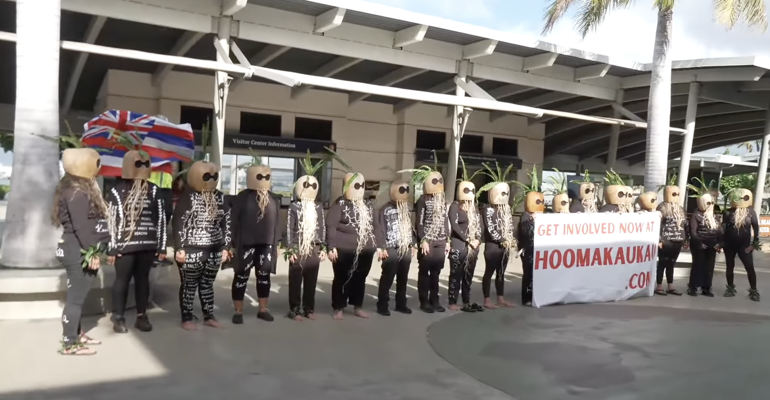 "Nā Wahine Koʻi Puʻuhonua is a new organization that has joined dozens of others in opposition to Governor Green's secret dealmaking with the U.S. Department of War." Source: @APECEpic on Youtube.com