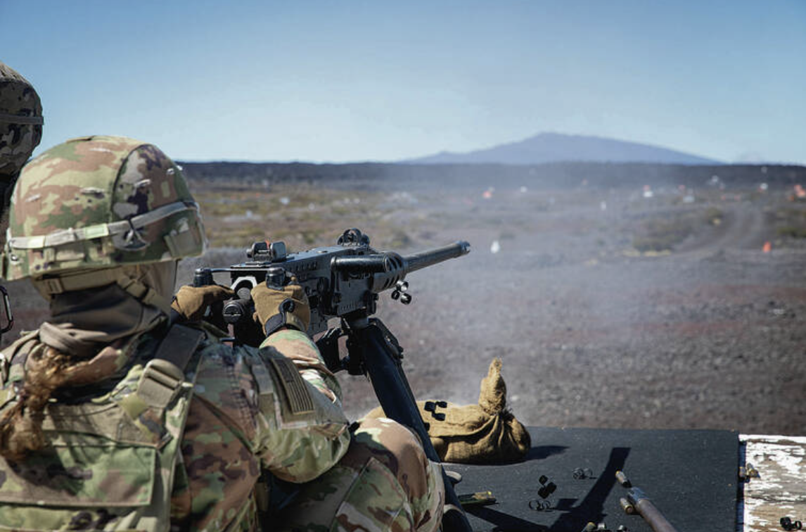 A U.S. Army soldier with the 25th Infantry Division, fired an M2 .50 caliber machine gun during an exercise in February at Pohakuloa Training Area on Hawaii island. Credit: Staradvertiser