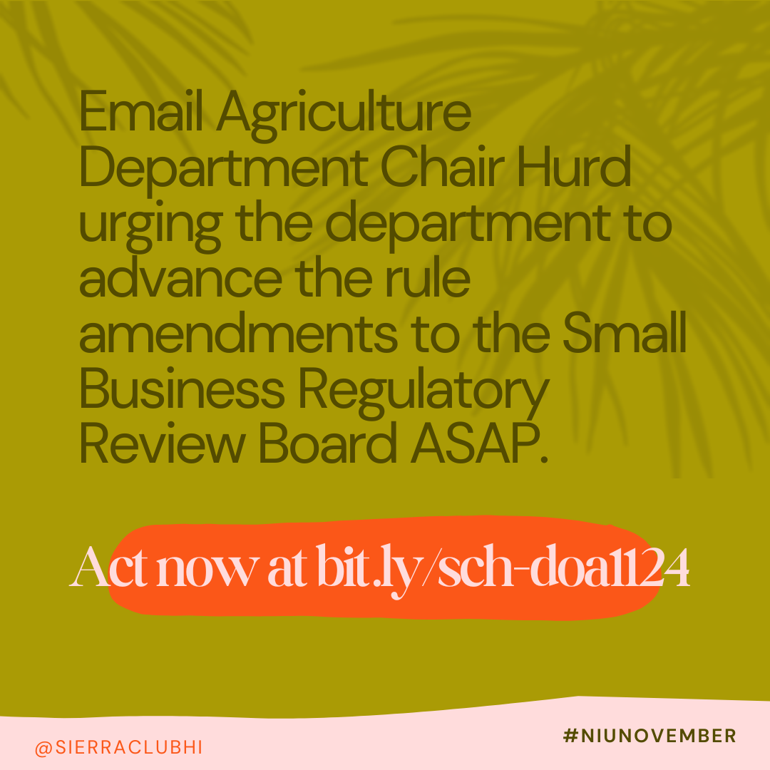 Email Agriculture Department Chair Hurd urging the department to advance the rule amendments to the Small Business Regulatory Review Board. Act now at bit.ly/sch-doa1124.